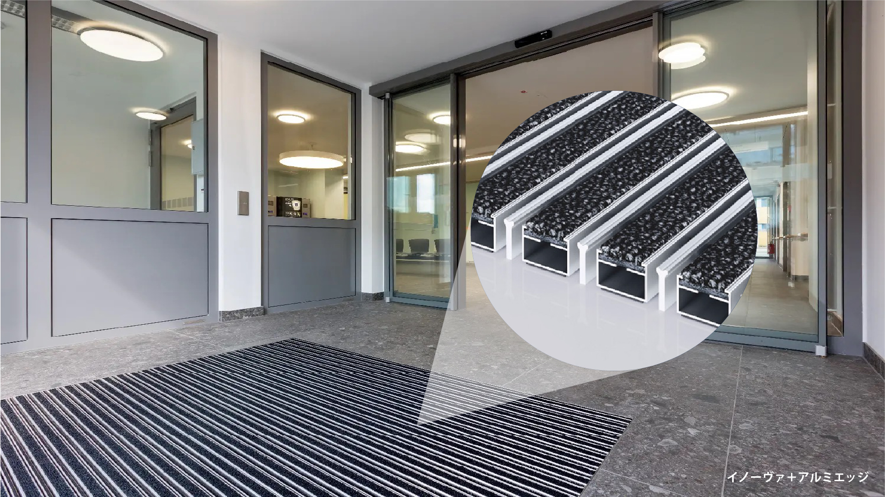 あらゆる環境、用途の出入り口に対応できる耐久性、豊富なバリエーションと高い製品精度が特長です。屋内への汚れの持ち込む出入り口に設置して、最小限のメンテナンスで大きな効果が得られます。