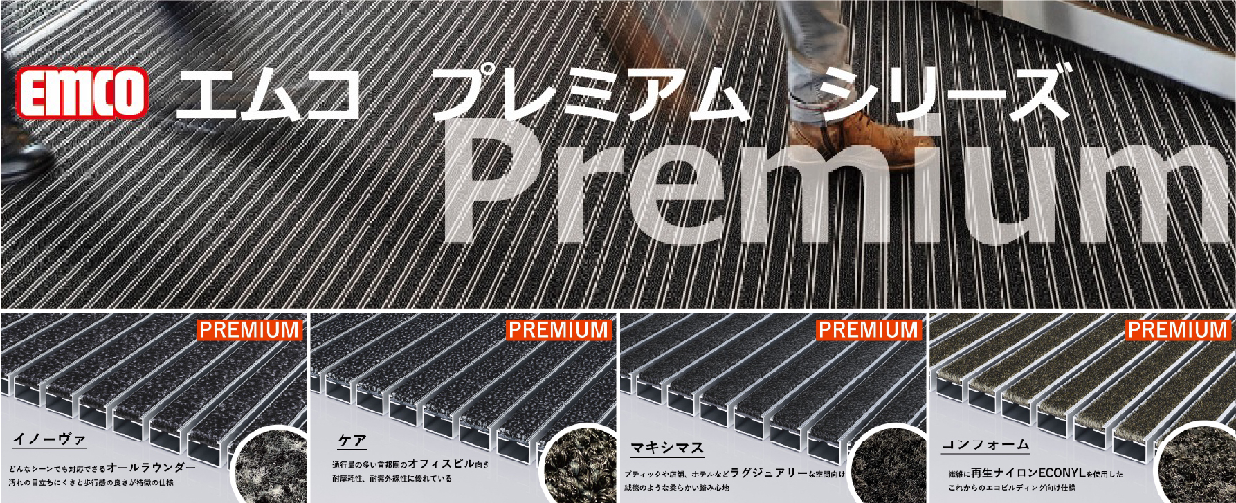 EMCOプレミアムシリーズは従来のオリジナルシリーズと比べて踏み心地と耐久性がアップした新しいシリーズです。