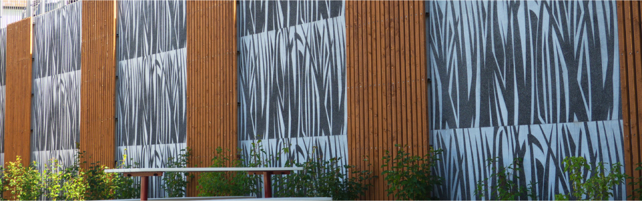 プレキャスト(PC)コンクリートにグラフィカルなデザインパターンを洗い出す技術です。 パターンをつけて洗い出したコンクリート表面は、美しい仕上げとして、景観とのやさしい調和を演出することができます。 様々なPCコンクリート製品に採用できます。