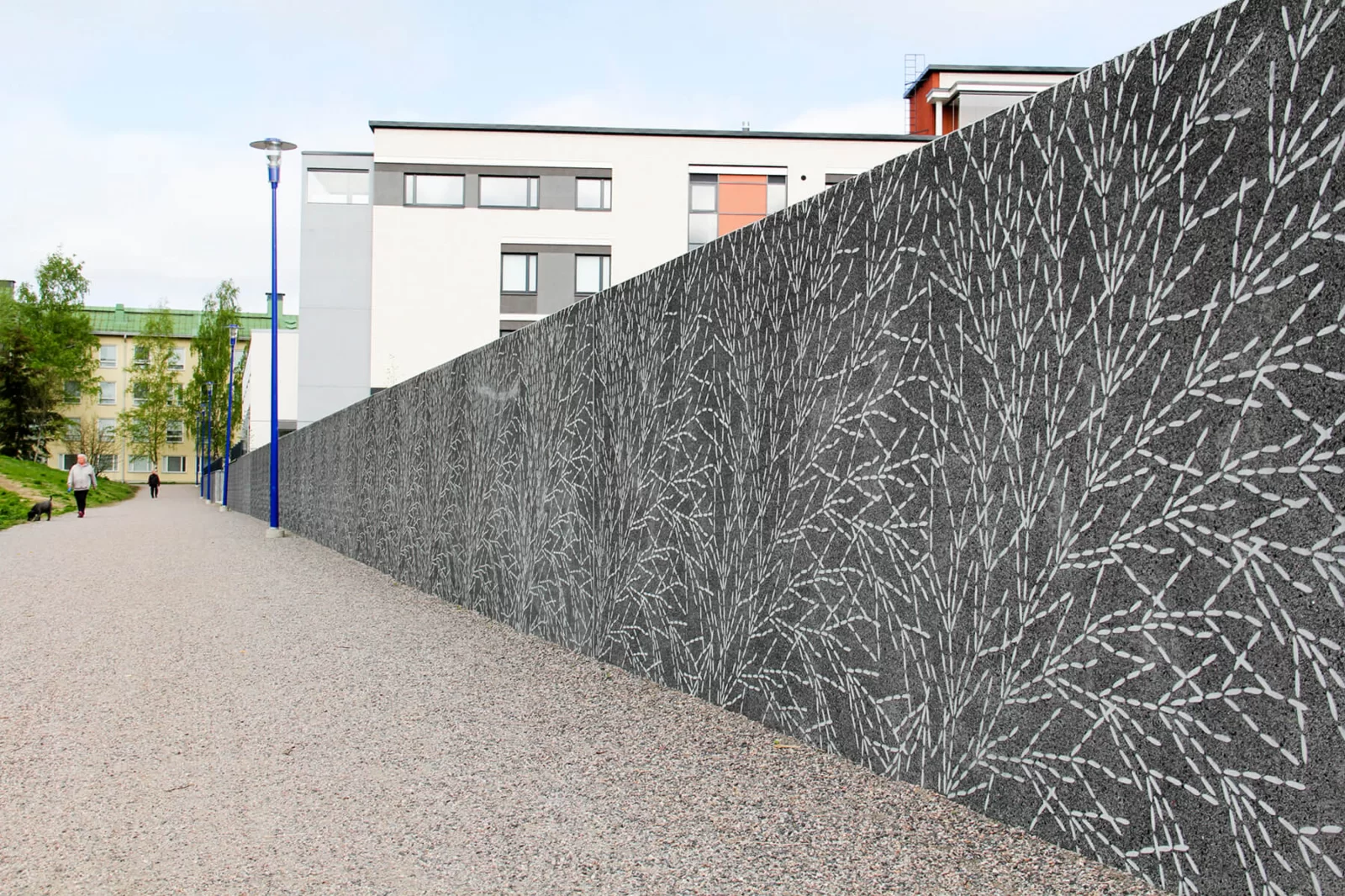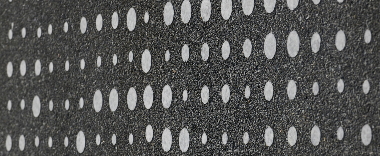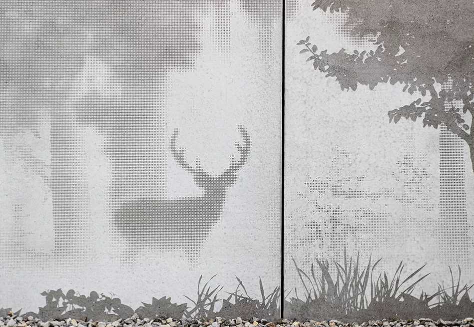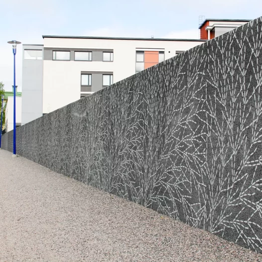 プレキャスト(PC)コンクリートにグラフィカルなデザインパターンを洗い出す技術です。