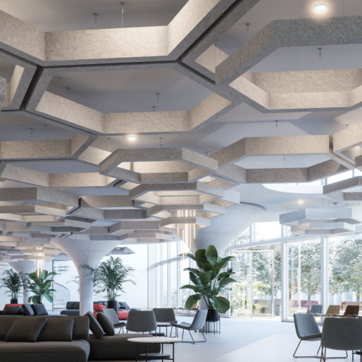 オフィスや学校、ラウンジ、空港、ブティック、レストラン、フィットネスジム、プールなどさまざまなシーンで残響音を低減した快適な空間作りの演出します。