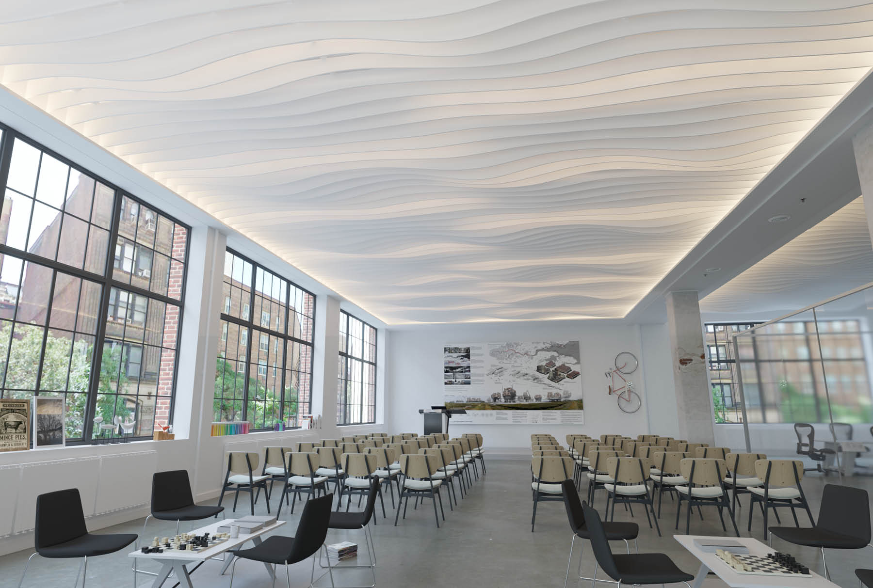 シームレスで質感の高い吸音天井として、欧米をはじめ世界の音響設計者に高い評価を受けています。日本でも美しい機能天井をご紹介しています。